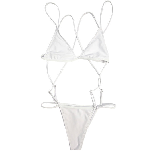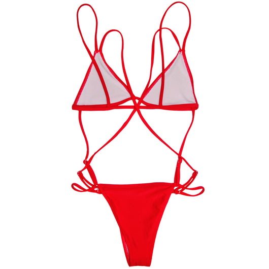 Suspender adjustable one piece bikini. Cris-cross straps on the sides. Available in 5 colors.