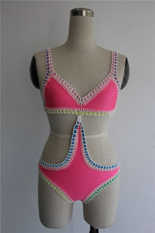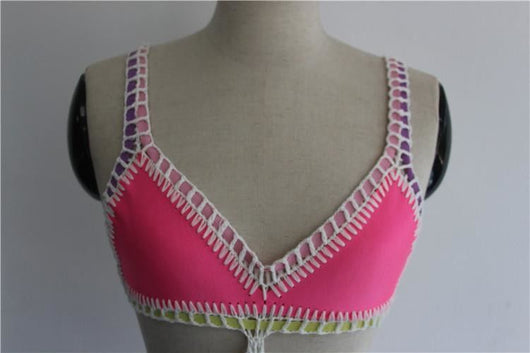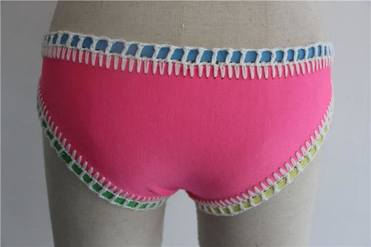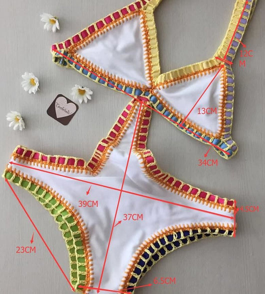 Handmade crochet pink bikini. One size fits most. Also available in White. Please consult the pictures for detailed measurements of this bikini.