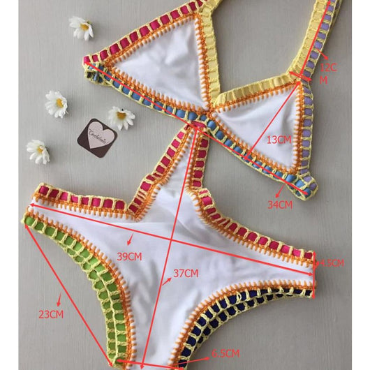 Handmade crochet white bikini. One size fits most. Also available in pink. Please consult the pictures for detailed measurements of this bikini.