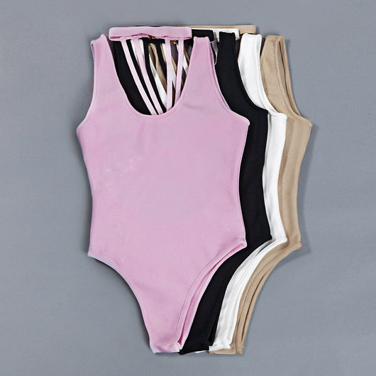 Luxurious bandage one piece bikini with intricate detail in the back. Heavyweight bandage material. 2 in 1 style : may be worn as a bikini by the poolside or bodysuit with a skirt or jeans. Available in 4 colours.