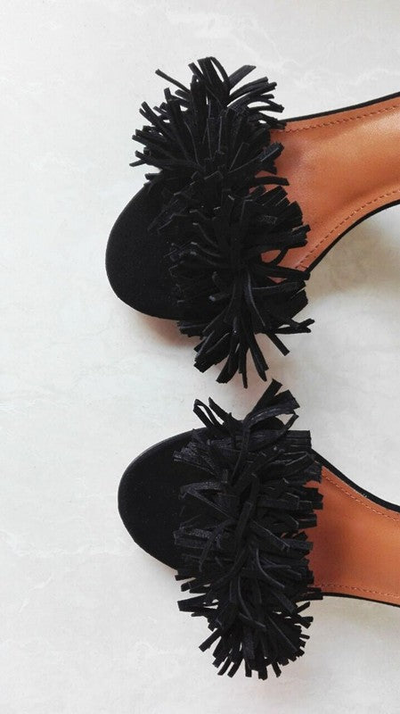 Beautiful fringe heels with tassels. Perfect summer wardrobe staple.